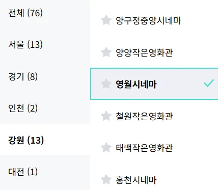 영월시네마 영화 예매 방법