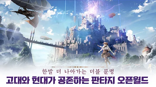위에 추가한 구글 플레이스토어에서 안드로이드용 앱을 설치하면 이집트, 그리스 로마 등 고대 전설과 신화의 낭만과 과학 문명으로 대표되는 메카닉의 초현실적 요소가 공존하는 판타지 세상을 토대로 오픈월드의 MMORPG 게임을 즐길 수 있다.
