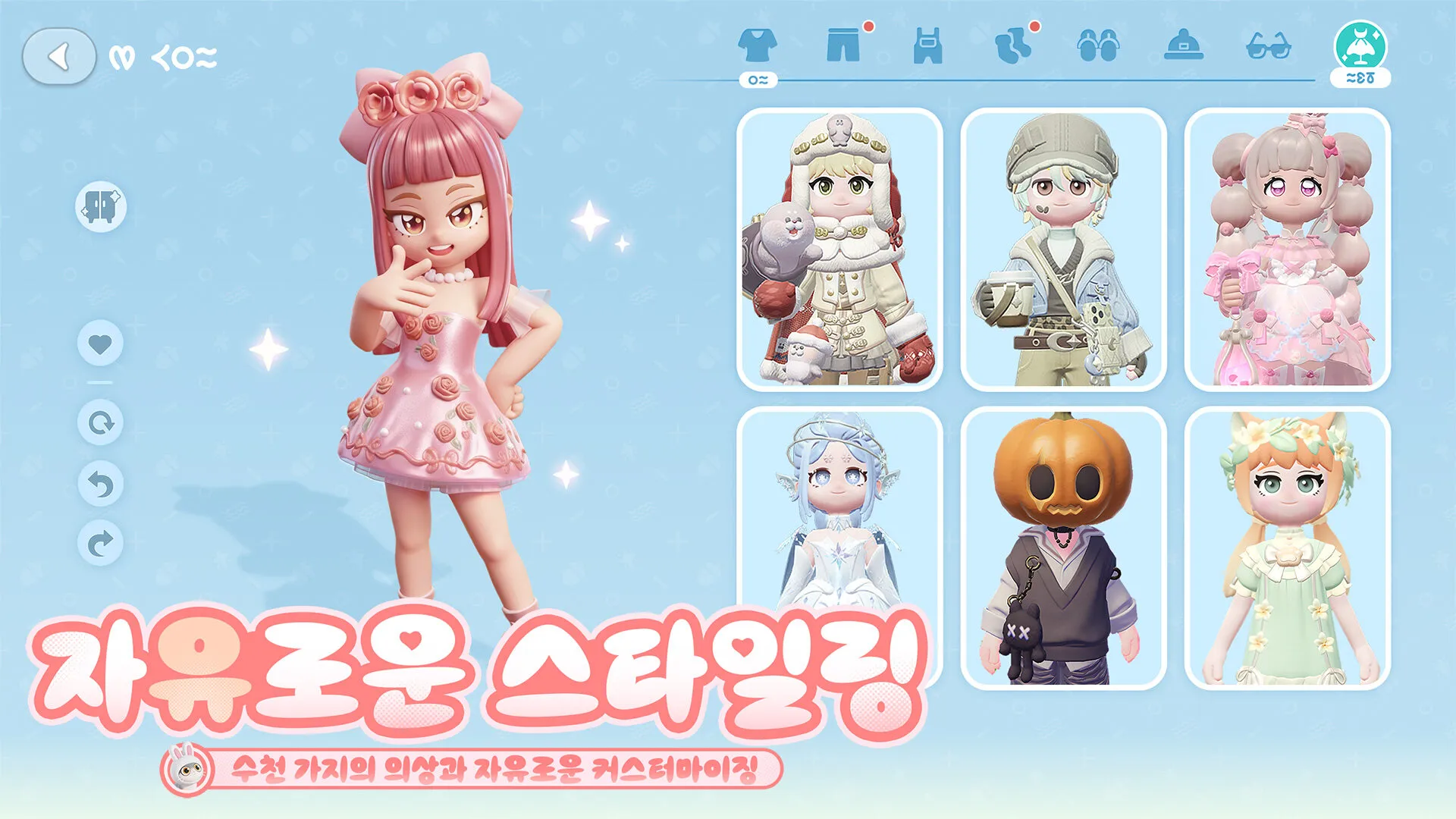 자유로운 스타일링, 나만의 개성 표현 – 수천 가지의 의상과 자유로운 커스터마이징으로 매일 다른 기분을 표현하세요. 캐주얼부터 우아한 드레스, 개성 넘치는 코스튬까지, 당신만의 스타일을 마음껏 드러낼 수 있습니다.