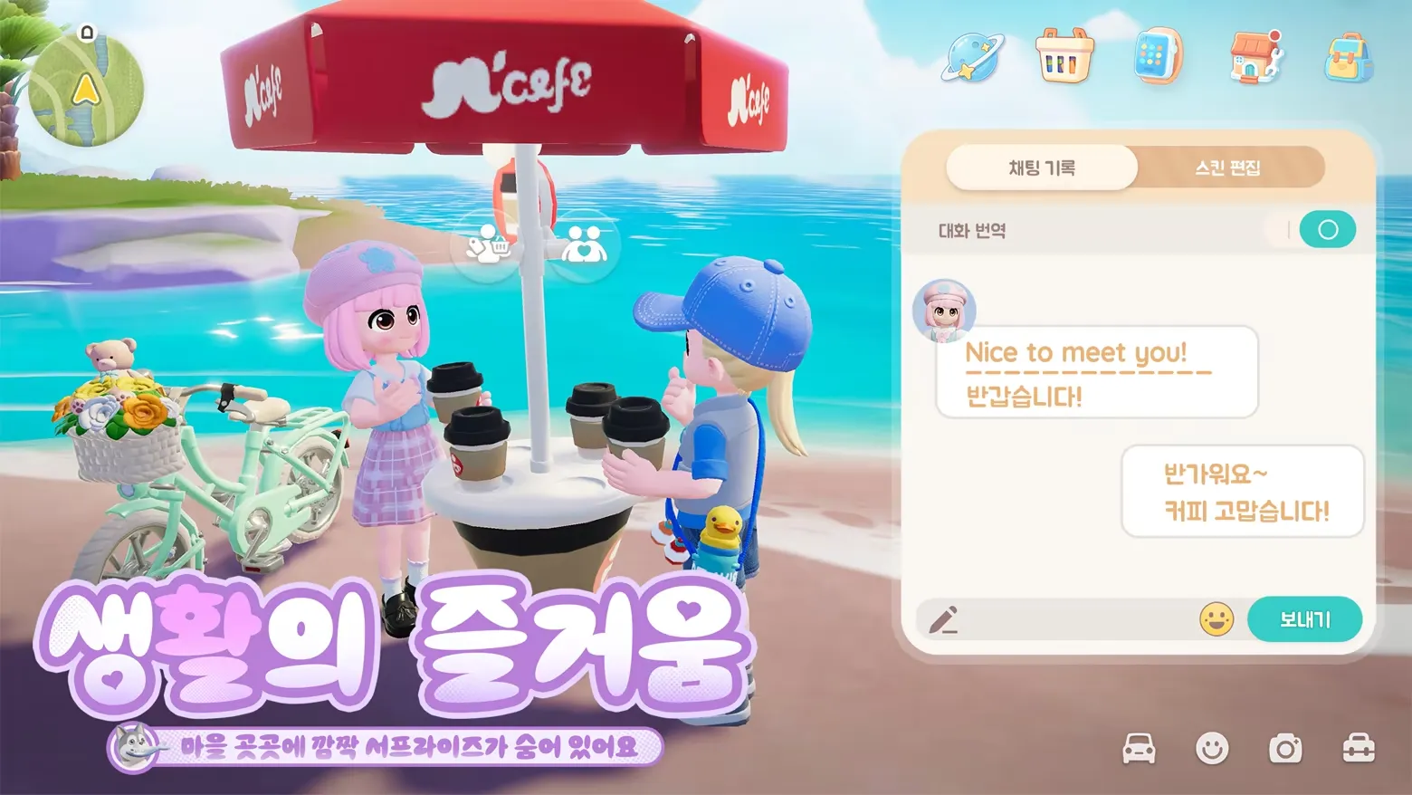 관계를 맺는 기쁨, 마음의 거리를 좁히는 시간 – 매력적인 두근두근 타운 주민들과 대화하고, 전 세계 유저들과 설레고 따뜻한 시간을 보내며 마음과 마음의 거리를 좁혀보세요.