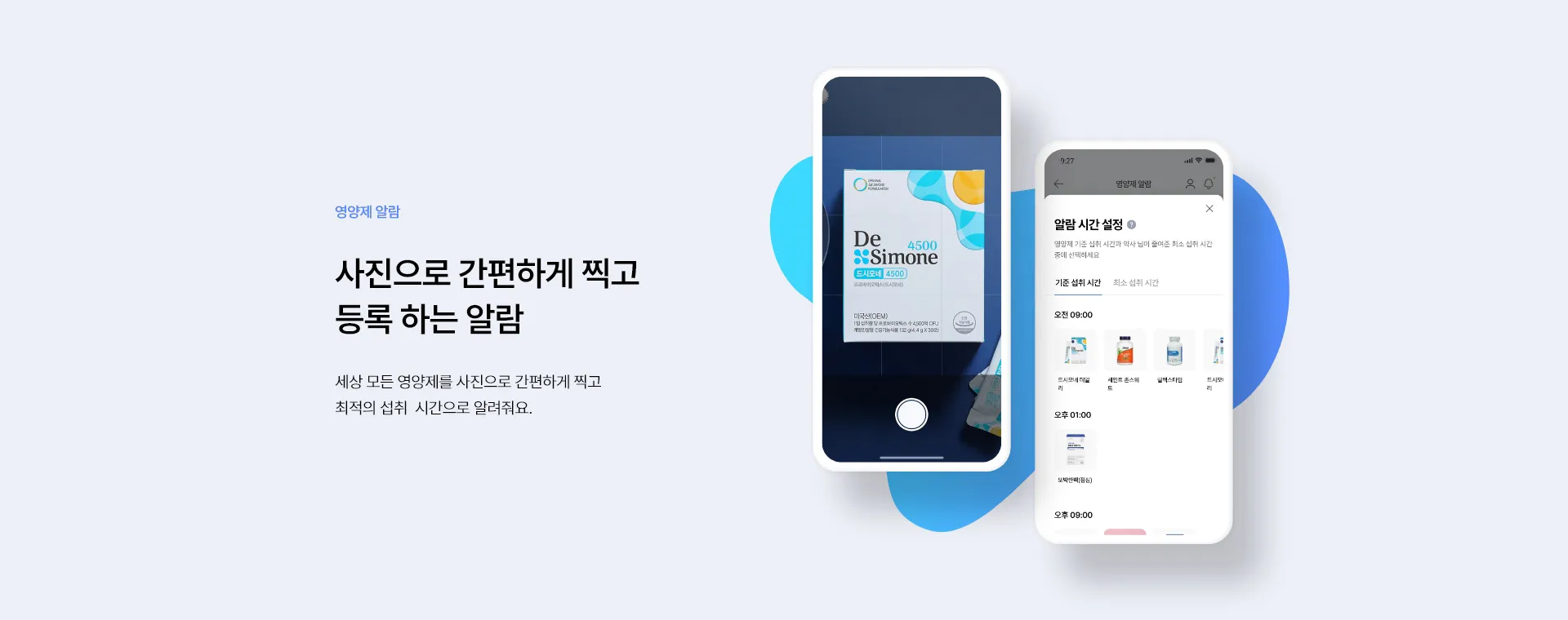 기본적으로 자신이 먹는 영양제 사진을 업로드만 하면 자동으로 영양제를 분석하고 섭취해야 할 시간을 알려준다.