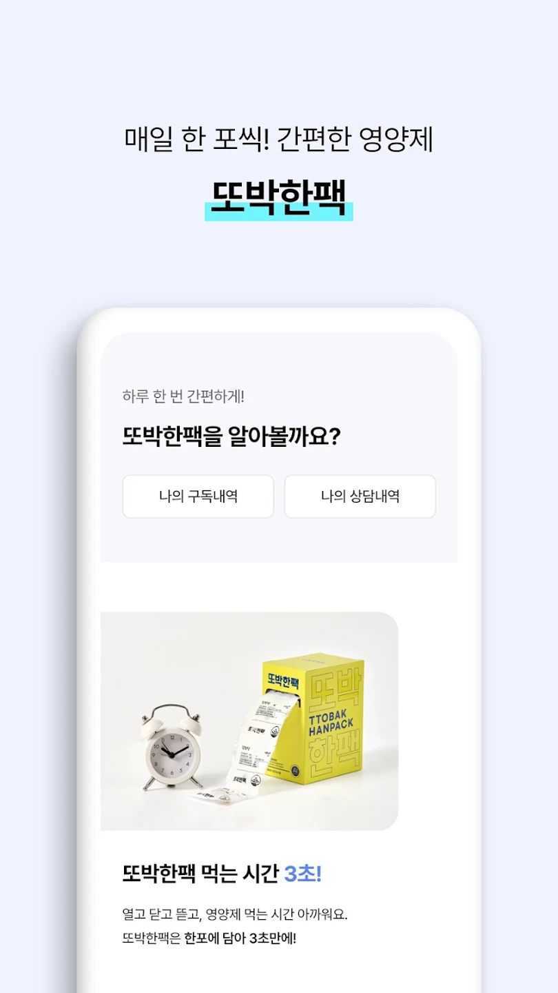 단, 무료는 아니고 큰 폭으로 할인가를 적용해서 체험할 수 있도록 낱개 포장으로 제공하는 방식이다. 이러한 영양제 쇼핑몰인 또박케어에서 모바일에서 간편하게 영양제 성분을 분석해서 최적의 영양제를 추천하는 또박케어 앱을 제공하는데, 해당 또박케어 앱을 설치하는 과정부터 상세한 내용은 아래에서 자세히 확인할 수 있다.