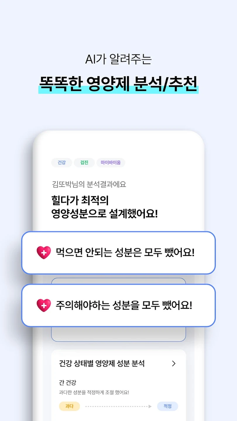 바로 부가적인 편의 기능 중에 영양제 분석 및 영양제 섭치 알람 서비스가 일반인들이 무료로 사용하면서도 매우 유용한 생활 편의 기능이다.