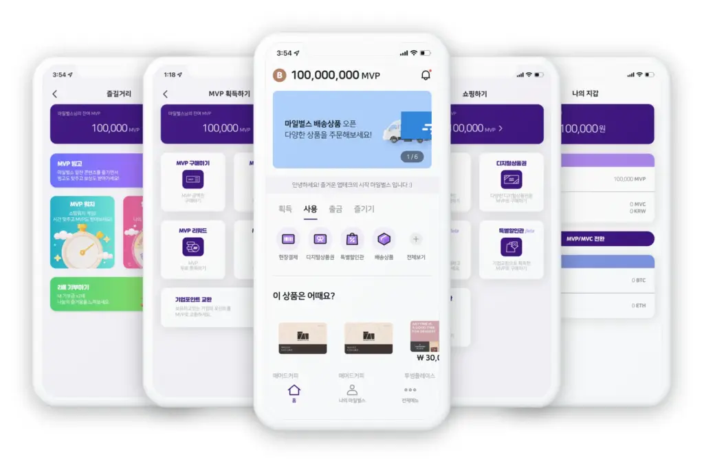 기본적으로 블록체인 기반의 마일리지 교환 및 통합 결제 플랫폼인 마일벌스는 모바일용 전용 앱으로 제공하는데, 기업 포인트 및 마일리지를 손쉽게 모아서 현금처럼 사용하거나, 다양한 게임까지도 즐길 수 있는 앱테크이다.