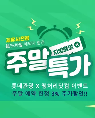 더불어 좌석이 이미 확보된 상품만을 제공하는 땡처리여행, 오늘 당장 사용이 가능한 땡처리 국내호텔 등도 간편하게 검색하고 예약할 수 있다.