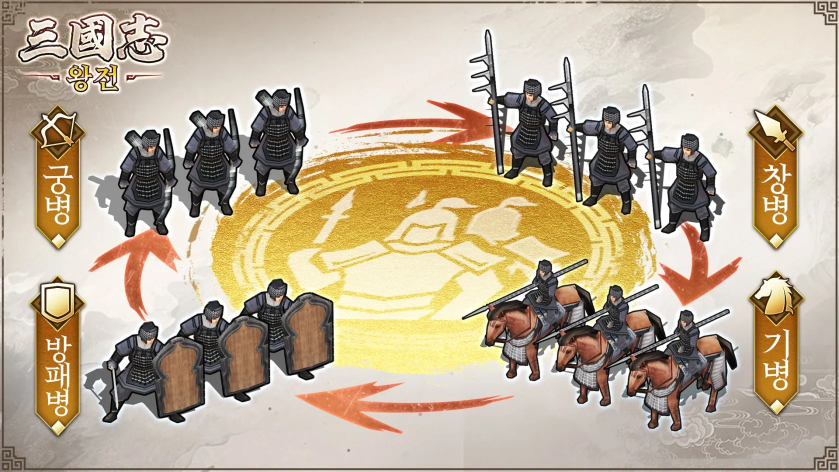 이때 기병은 방패병에 강하고 방패병은 궁병에 강하며, 궁병은 창병에 강하고 창병은 기병에 강한 즉, 4대 병종 간에는 특별한 윤회적인 상성 관계를 지니고 있다. 바로 이러한 상성 관계를 활용해야만 전장에서 승률을 높일 수 있다.