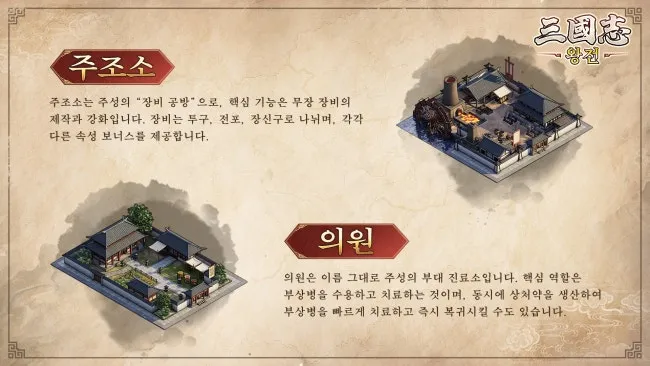 위에 추가한 앱스토어에서 삼국지 왕전 앱을 설치하면 아이폰 또는 아이패드에서 깔끔한 UI로 간단한 조작만으로 플레이할 수 있는데, 이때 4대 계급 중 하나를 선택하고 4대 병종을 조합해서 전투를 펼치는 활동 뿐만 아니라 건물 건설도 빼놓을 수 없다.