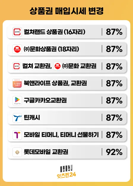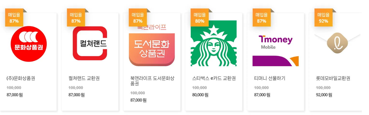 즉, 최소 87% 이상의 매입가는 보장하고 있므로 1만원권 상품권을 팔 때 고객이 현금으로 받을 수 있는 돈은 8700원 이상이라는 의미이다.