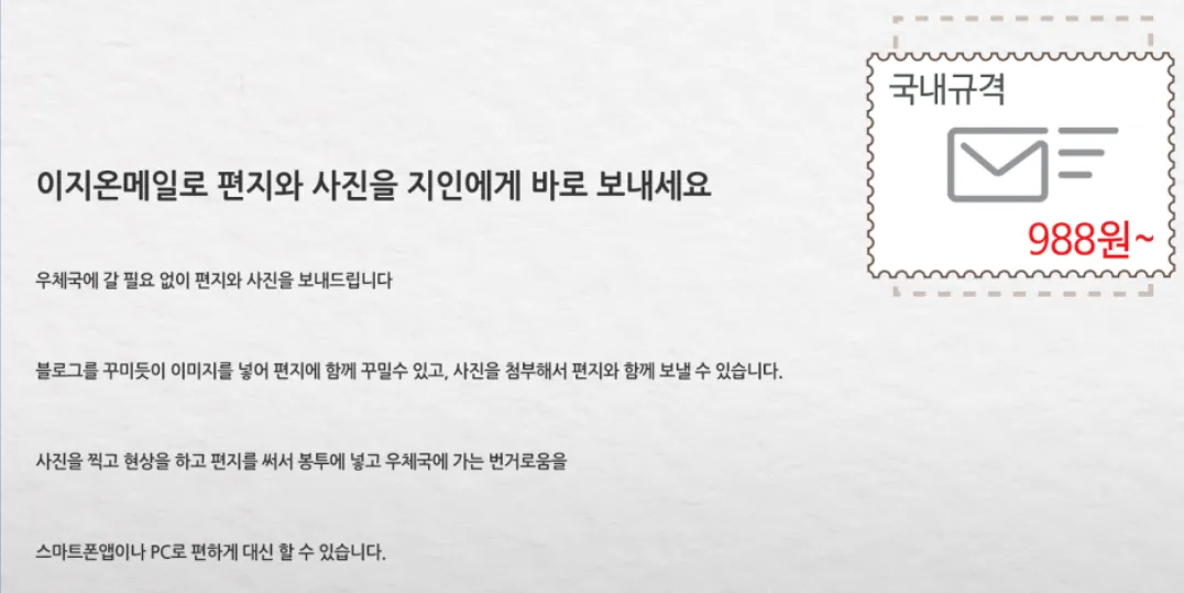 참고로, 해당 이지온메일은 실제 우체국에서 편지 형태로 발송하므로 우편요금을 납부해야 하는 유료 상품이다.