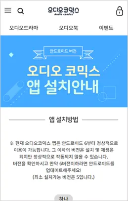 다음에서 갤럭시 스마트폰과 같은 안드로이드용 모바일에서 오디오코믹스 완전판 앱을 설치하는 방법을 자세히 확인할 수 있다.
