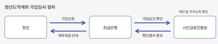 더불어 나이 기준에 부합하더라도 소득이 없는 청년은 가입이 불가능하다. 국세청에서 소득증명이 가능한 경우에만 청년도약계좌에 가입할 수 있으므로, 소득이 없거나 국세청을 통한 소득금액증명이 불가능하면 가입할 수 없다.