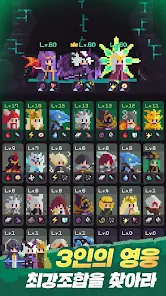 참고로, 각각의 스테이지에 등장하는 몬스터들을 자동으로 공격하는 방치형 플레이를 지원하는데, 각각의 스테이지의 마무리는 보스가 등장하는데 바로 여기에 어떤 스킬을 보유한 영웅들로 3인의 팀을 배치했는가에 따라 승부가 갈린다.