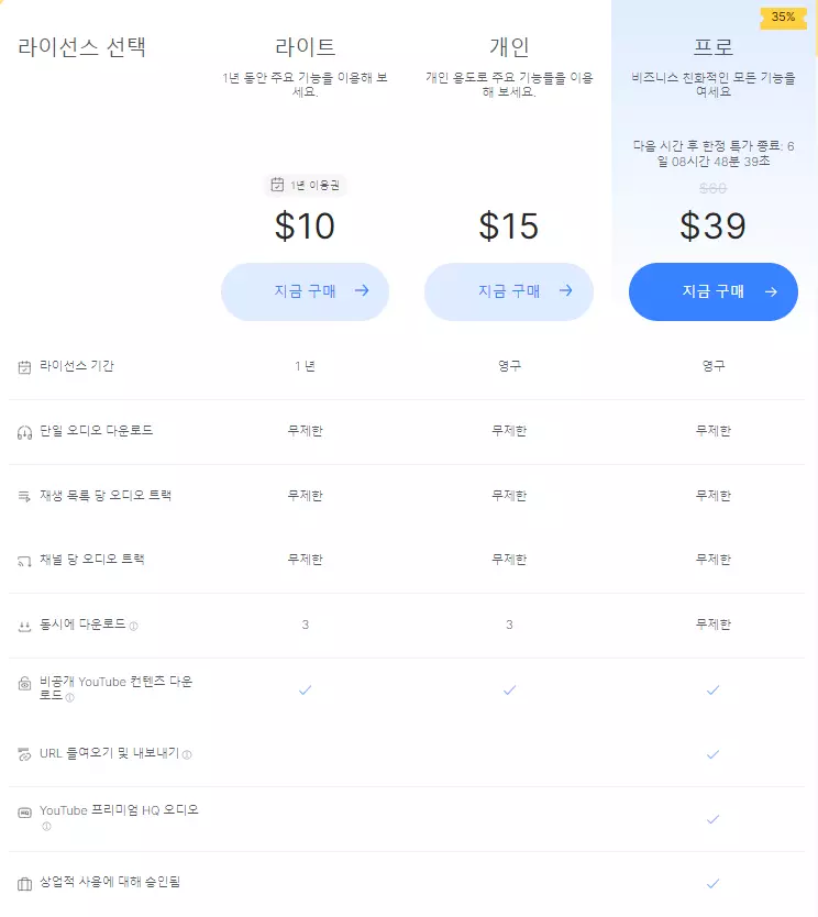 참고로, 10달러인 Lite 상품은 1년간만 무제한으로 유튜브 영상에서 음원을 추출해 MP3 파일을 저장할 수 있으므로, 만약 해당 4K YouTube to MP3 프로그램을 구매할 의사가 있다면 Personal 상품을 구매하는 게 경제적이다.