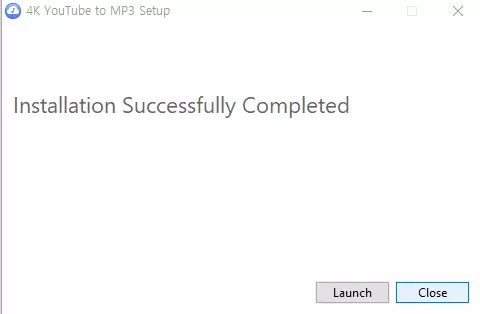 위와 같이 간단히 4K YouTube to MP3 프로그램 설치를 완료한 후에 Close 버튼을 눌러 설치 과정을 종료하면 컴퓨터 바탕화면에 4K YouTube to MP3 바로가기 아이콘을 생성한다.