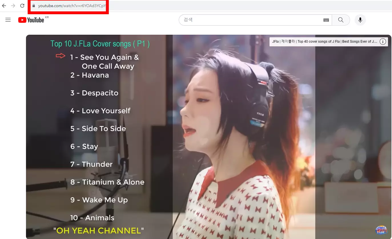 위와 같이 스트리밍 중인 유튜브에서 음원을 추출하려면 해당 URL 주소를 복사한다.
